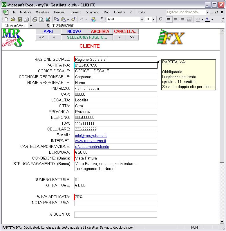 Scheda cliente o contatto:
